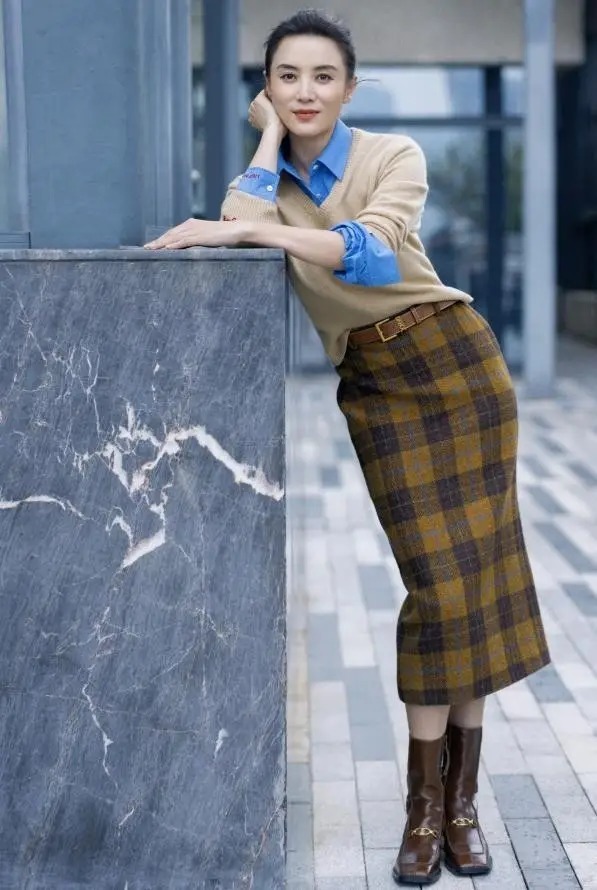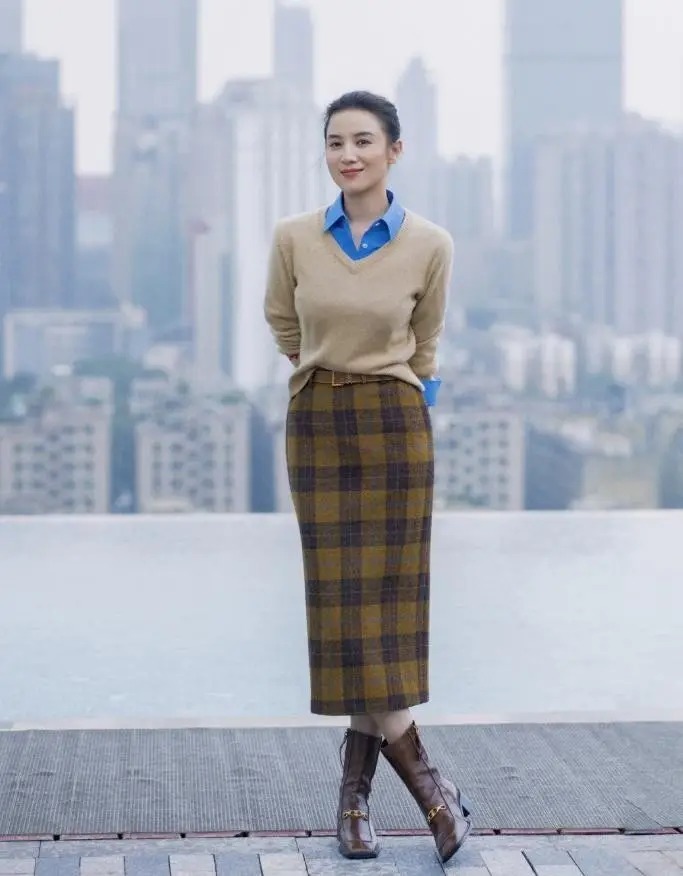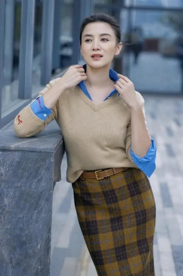 身为“气质女神”,宋佳穿搭从不浮夸,多是基础单品,因而玩转叠穿轻松自然。基础款蓝衬衫,叠搭卡其色V领羊绒衫,露出衣领、袖口,层次感十足,下身搭配格纹半身裙,复古气息顿生。